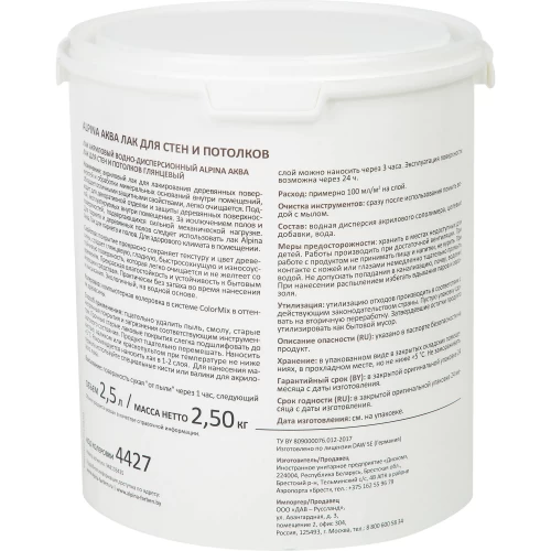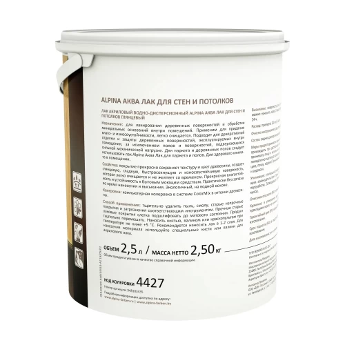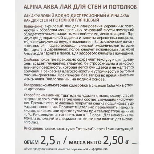 Лак для стен акриловый Alpina Аква-лак цвет прозрачный глянцевый 2.5 л