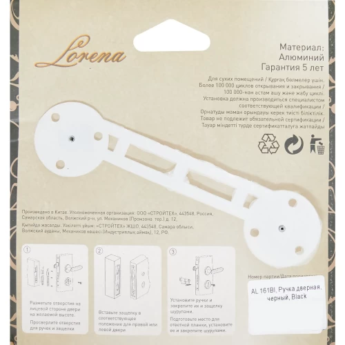 Дверные ручки AL 161 BL, комплект, цвет черный