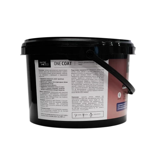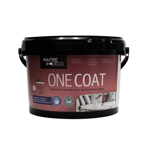 Краска для интерьера Maitre Deco One Coat - высокопрочная износостойкая акриловая краска для высококачественной отделки стен и потолков в гостиных, детских комнатах, спальнях и др. помещениях с нормальной и повышенной влажностью.