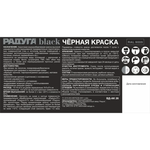 Краска для стен и потолков Радуга ВД-АК 26 цвет черный 9 л