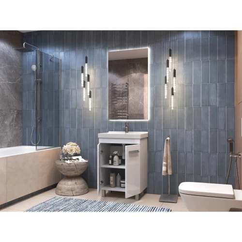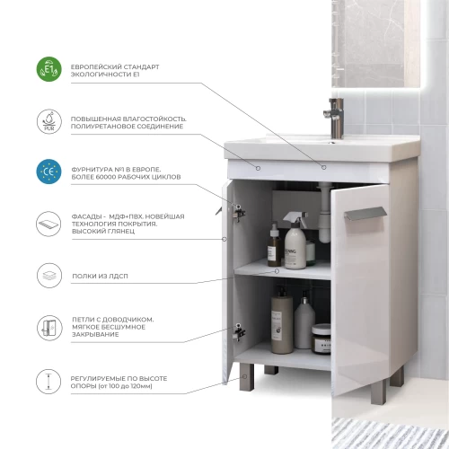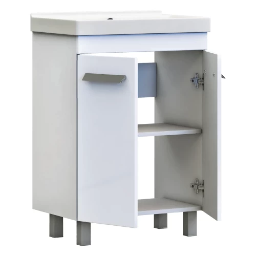 Тумба в ванную Vigo Milo 60-2-0 сделана из ДСП. Цвет — белый глянец. Предназначена для установки раковины накладного типа. Используется для хранения вещей, средств бытовой химии. Для этого имеется одна полка.