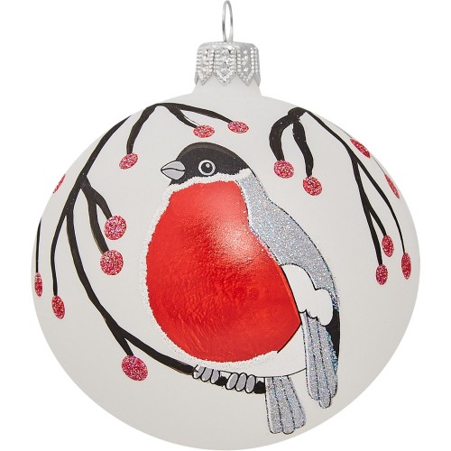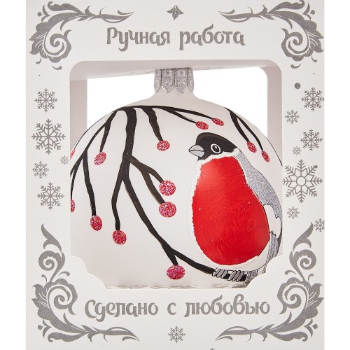 Шар ёлочный «Снегирь в рябине» 85 мм