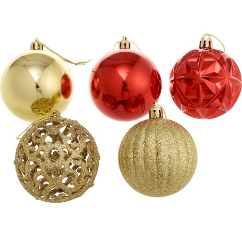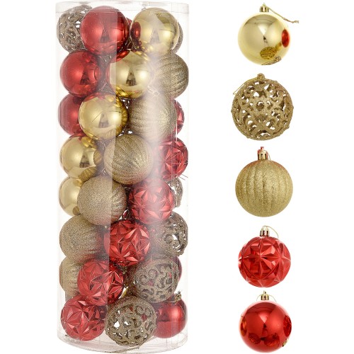 В наборе 40 шт. Размер шаров — 6 см. Цвета — красный и золотистый, внешнее исполнение игрушек подчеркивает волшебную атмосферу зимних праздников, создает приподнятое настроение.
