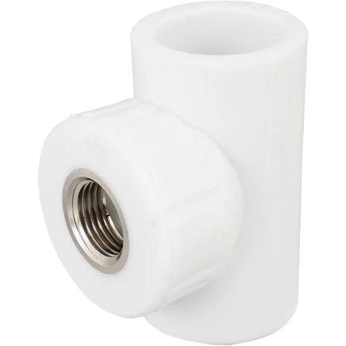 Тройник комбинированный — полипропиленовый фитинг длиной 7,85 см. Представляет собой гладкий белый патрубок с двумя отверстиями с входным диаметром 32 мм и резьбовым ответвлением размером 1/2". Соединение — внутреннее/под пайку. Фитинг подходит для системы с температурой до 90 °C и давлением до 25 бар (горячее водоснабжение, система отопления и кондиционирования, питьевая вода).