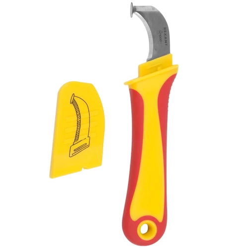 Нож для снятия изоляции Rexant с пяткой 180 мм*. Нож монтажника предназначен для удаления изоляции с многожильного кабеля и прочих работ.