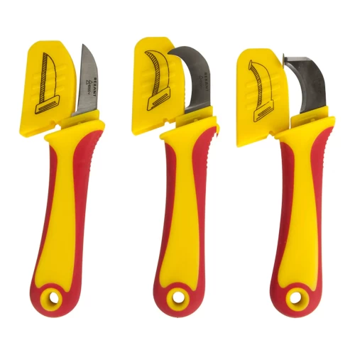 - Наличие пластины на кончике лезвия обеспечивает наиболее безопасное снятие оболочки с многожильных кабелей без повреждения жильной изоляции.