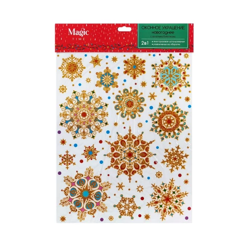 Наклейки новогодние Блестящие снежинки 30х38 см