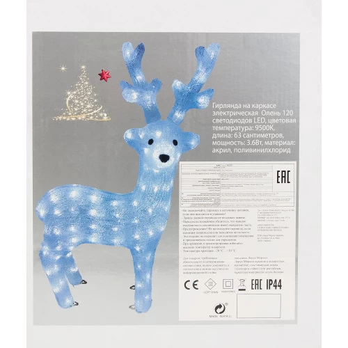 Электрогирлянда-фигура «Олень» для улицы 120 ламп, 63 см, цвет холодный белый