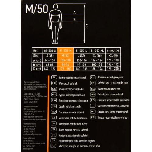 Размер куртки — M (50). Основной цвет — черный. Одежда сертифицирована по стандартам ЕС. Страна производства — Польша.