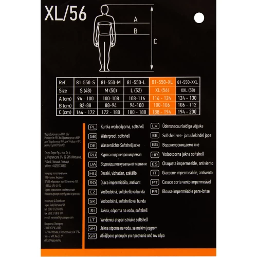 Размер куртки — XL (56). Основной цвет — черный. Одежда сертифицирована по стандартам ЕС. Страна производства — Польша.