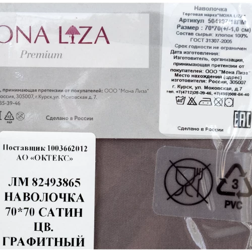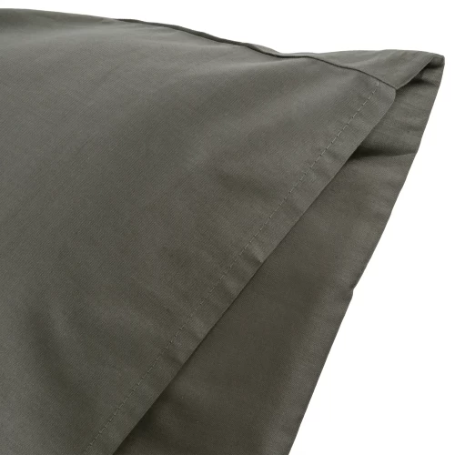 Наволочка однотонная, графитного цвета. Материал — 100% хлопок (сатин) — гипоаллергенный и гигиеничный, пропускает воздух и впитывает влагу. Ткань с сатиновым переплетением прочная, с приятным мягким блеском с лицевой стороны.