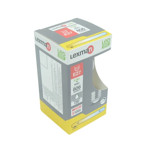Светодиодная лампа от LEXMAN — хороший вариант для тех, кто хочет сократить потребление электроэнергии. При световом потоке 620 лм она потребляет всего 8 Вт — по сравнению с лампой накаливания, которая расходует 60 Вт.