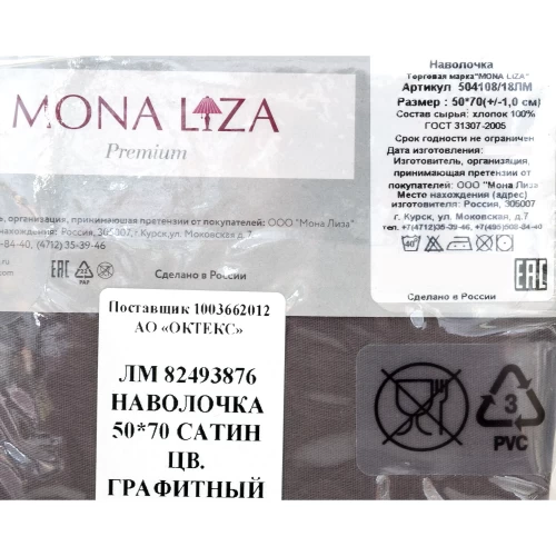 Наволочка 50х70 см сатин цвет графитный