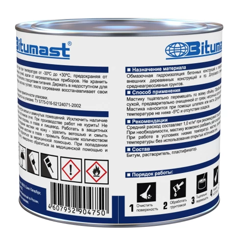 Мастика гидроизоляционная битумная Bitumast для фундамента 1.8 кг