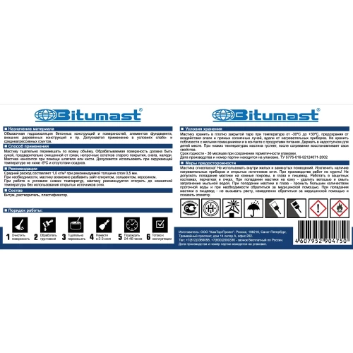 Меры предосторожности: Мастика огнеопасна!Не использовать внутри жилых и замкнутых помещений.