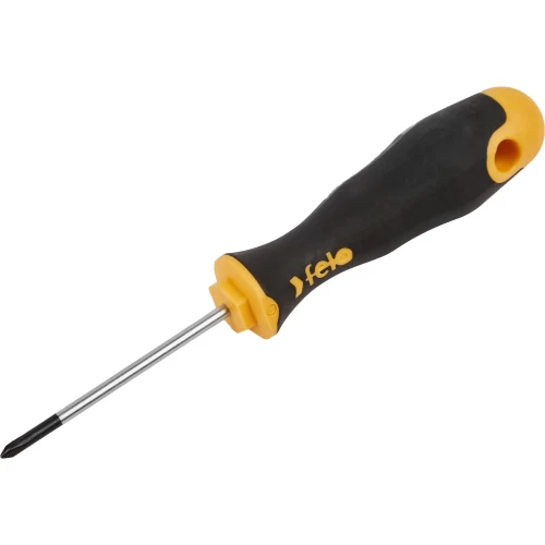 Отвертка крестовая Felo с крестовым шлицем предназначена для работы с крепежом в быту и в профессиональной сфере деятельности. Литая ручка изготовлена из противоскользящего плотного пластика, благодаря эргономичной форме обеспечивает удобный захват. Стержень выполнен из закаленной хромованадиевой стали, обеспечивает долговечность и износостойкость инструмента. Наконечник с черным покрытием позволяет точно попасть в крепеж.
