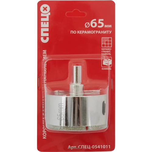 Коронка по керамограниту Спец предназначена для сверления кафельной плитки и природного камня при прокладке в них различных коммуникаций, установке мебели и т.д. Режущая часть коронки имеет алмазное напыление. Коронка предполагает работу в безударном режиме. Возможно как мокрое, так и сухое сверление.
