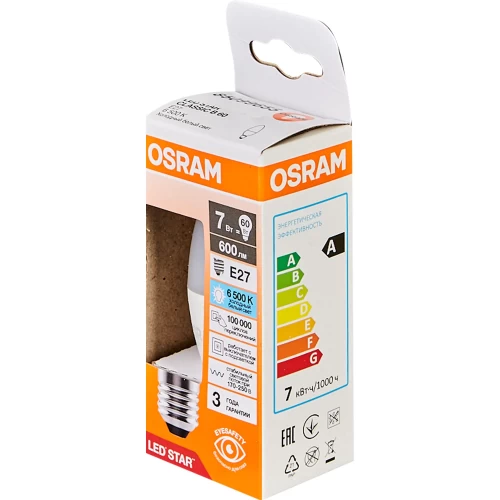 Лампа светодиодная Osram свеча 7Вт 600Лм E27 холодный белый свет