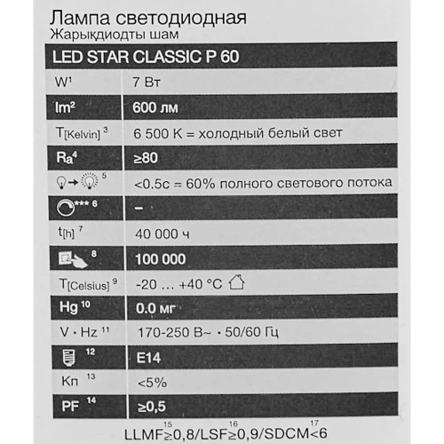 Лампа светодиодная Osram шар 7Вт 600Лм E14 холодный белый свет
