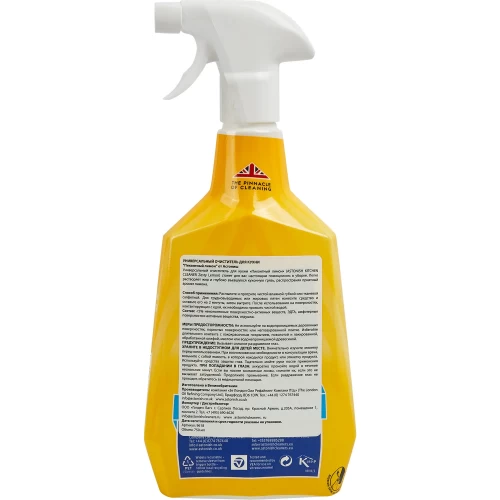 Инструкция по применению Распылите и протрите чистой влажной тканевой салфеткой или губкой. Для стойких пятен и жира — распылите и оставьте на 2 минуты, затем протрите. После использования промойте контактирующие с едой поверхности.