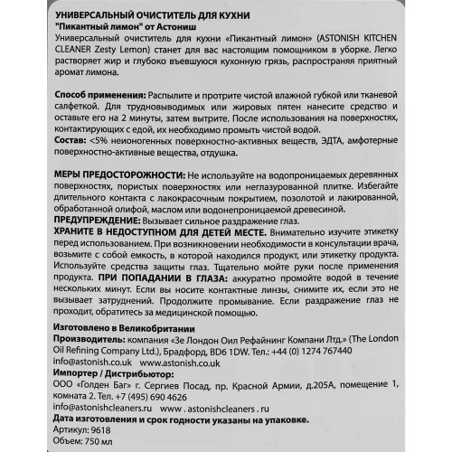 Очиститель для кухни Astonish 750 мл