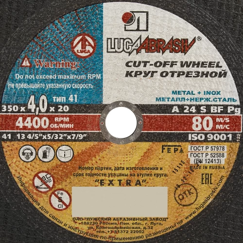 Диск отрезной по стали Луга 350x20x4 мм