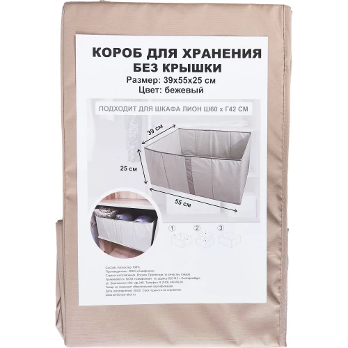 Короб для хранения без крышки полиэстер 39x55x25 бежевый