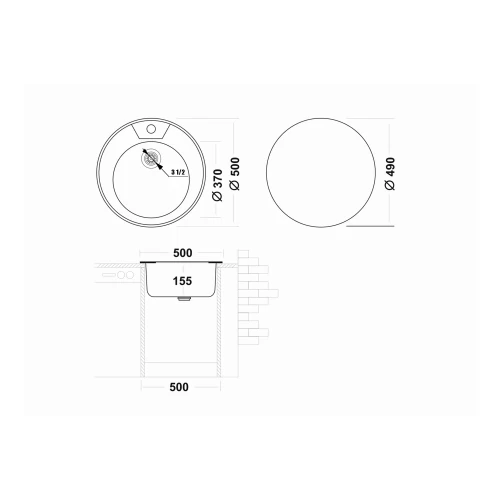 Мойка врезная Ukinox Frant круглая 50x16x50 см нержавеющая сталь цвет серый матовый