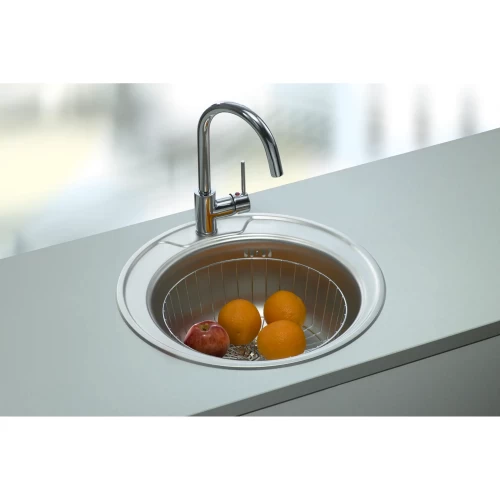 Кухонная мойка изготовлена из нержавеющей стали, устойчива к коррозии и высоким температурам, отлично переносит контакт с агрессивными веществами и долго сохраняет первоначальный внешний вид. Дизайн мойки обладает динамичными формами и прекрасно подойдет для кухни любой стилевой направленности.