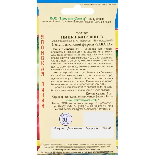 Семена овощей томат Пинк Импрэшн F1, 3 шт.