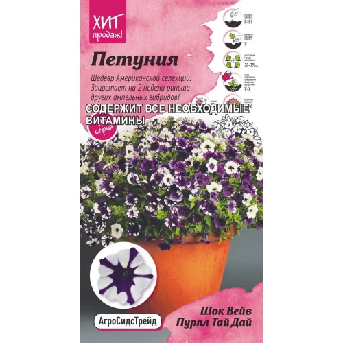 Семена цветов Агросидстрейд петуния Шок Вэйв Пурпл Тай Дай F1