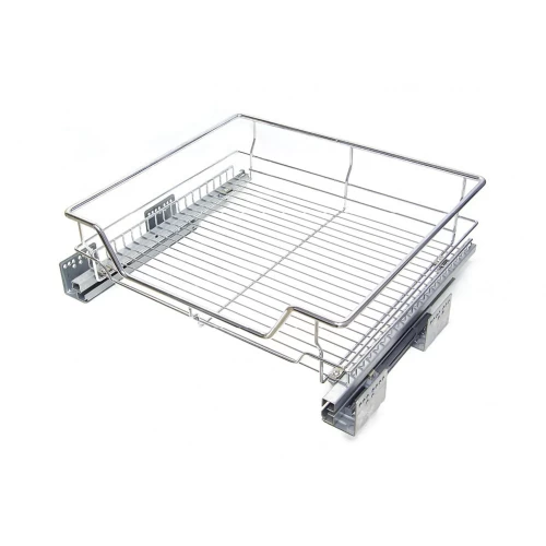 Корзина с выдвижным механизмом Jet обеспечивает свободный доступ к содержимому. Оснащена направляющими системы плавного закрывания Easy motion и удобной сеткой. Изготовлена из нержавеющей стали, выдерживает нагрузку до 10 кг.