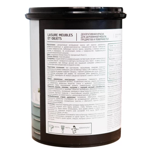 Краска для мебели Maitre Deco Lasure - декоративная интерьерная краска для окраски деревянных, древесностружечных и древесноволокнистых поверхностей внутри помещений, а также поверхностей, требующих частого мытья, например, в ванных комнатах, кухнях и коридорах. За исключением полов и поверхностей, подвергающихся сильной механической нагрузке.