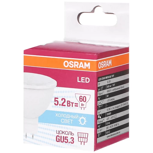 Лампа светодиодная Osram GU5.3 5.2 Вт 500 Лм свет холодный белый матовая колба