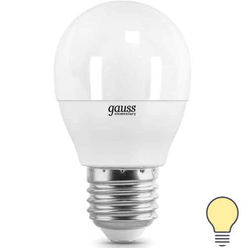 Лампа светодиодная Gauss Elementary E27 220 В 8 Вт шар матовый 520 лм, теплый белый свет