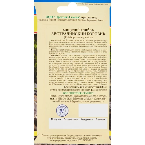 Мицелий грибов «Боровик Австралийский» отлично растет на приусадебном участке. Для этого достаточно только собрать почву в хвойном лесу (снять верхний слой до 20 см в глубину). Высаживают мицелий вблизи любого дерева. Для этого вокруг ствола на расстоянии до 1 м выкапывают лунки, плотно набивают их лесной почвой и в них размещают мицелий. Желательно сверху покрыть слоем мха.