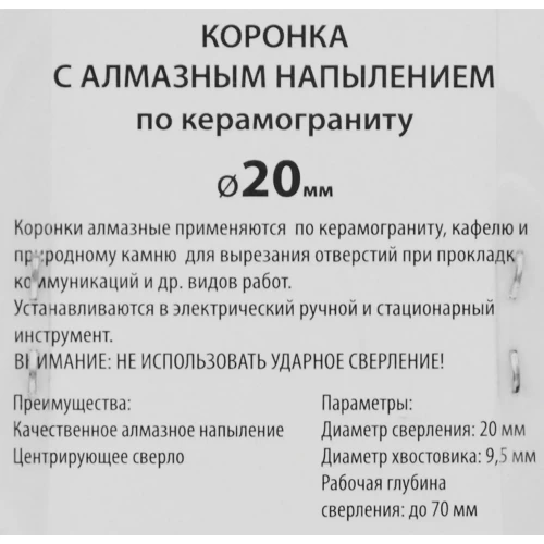 Коронка по керамограниту алмазная Спец 20 мм