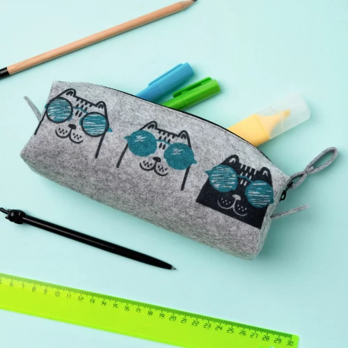 Пенал на молнии CATS TRIO фетр цвет серый