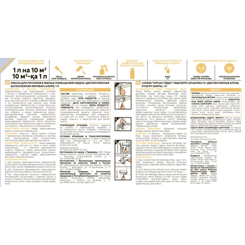 | Тип продукта | Краска для внутренних покрытий |