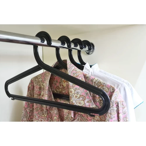Набор вешалок SPACEO 42x22.4x1.6 см полипропилен цвет черный 4 шт подходят для удобного хранения одежды. Практичные и надёжные, они не создадут лишнего визуального шума, что позволяет использовать их и для открытого хранения.
