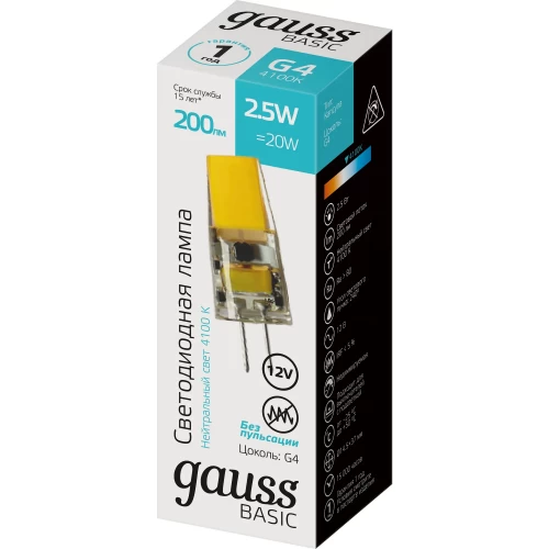 Лампа светодиодная Gauss G4 12 В 2.5 Вт капсула прозрачная 200 лм, нейтральный белый свет