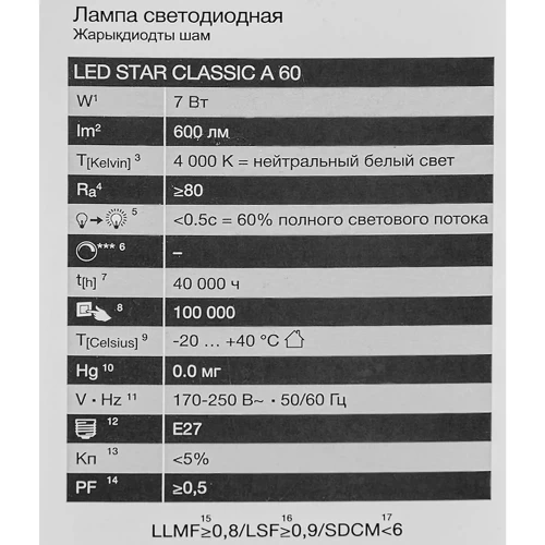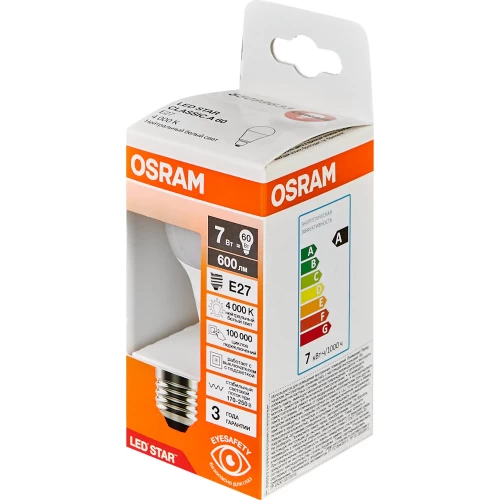 Лампа светодиодная Osram груша 7Вт 600Лм E27 нейтральный белый свет