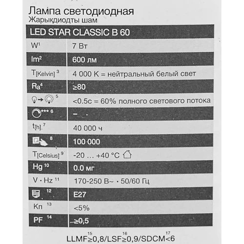 | Аналог лампы накаливания (Вт) | 60 |