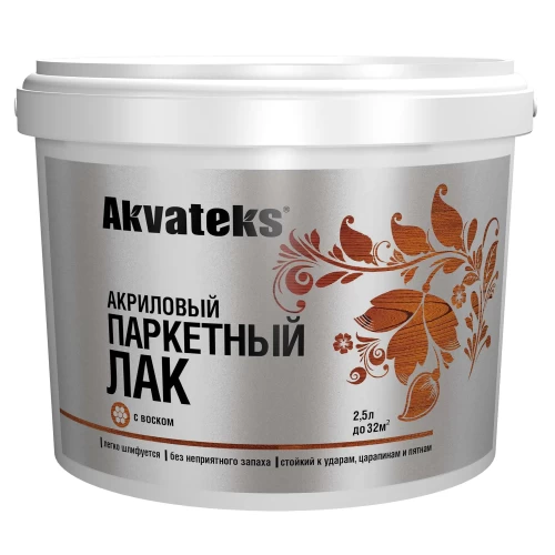 Лак паркетный Akvateks предназначен в качестве финишного покрытия деревянных, паркетных полов в помещениях со средней нагрузкой. Используется как декоративный и защитный материал. Может применяться для обработки вертикальных и горизонтальных поверхностей из дерева и материалов, изготовленных из древесины: фанеры, ДСП, ДВП и т. д. Разрешен к применению в детских и дошкольных учреждениях. После нанесения формирует плотную, матовую и прозрачную пленку, способную защитить дерево от негативного воздействия влаги, солнечных лучей.