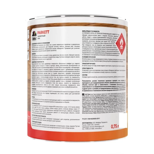 Лак паркетный Dufa Parkett полуматовый бесцветный 0.75 л