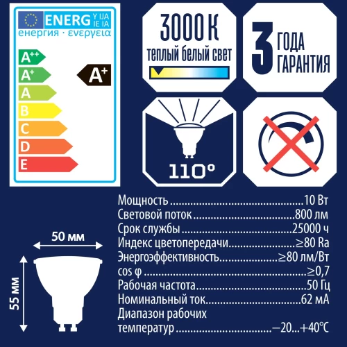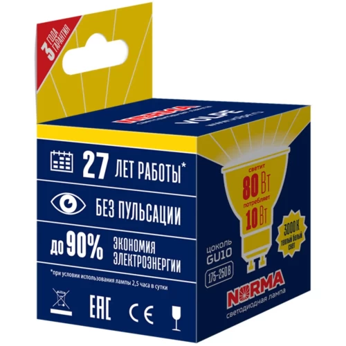 Лампа светодиодная Volpe Norma GU10 175-250 В 10 Вт спот 800 лм теплый белый цвет света