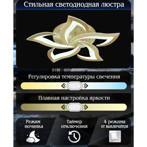 Люстра потолочная светодиодная 80 Вт с пультом управления цвет золотой