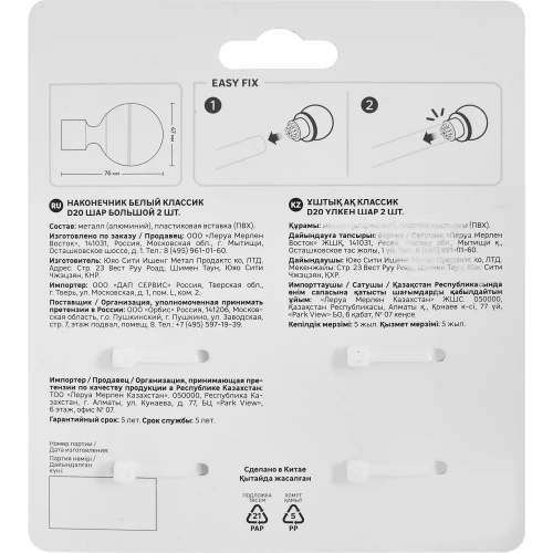 Наконечник Шар большой алюминий цвет белый классик 20 см