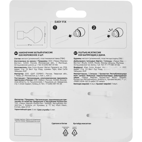 Наконечник Мороженое алюминий цвет белый классик 20 см