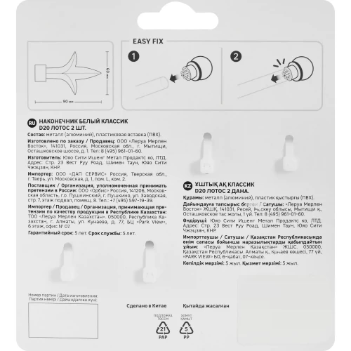 Наконечник Лотос алюминий цвет белый классик 20 см